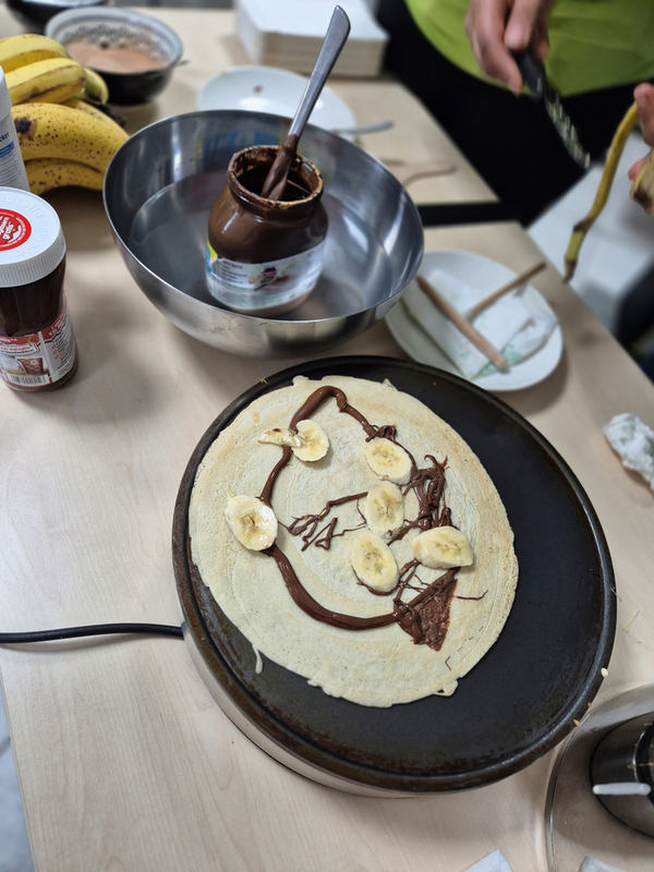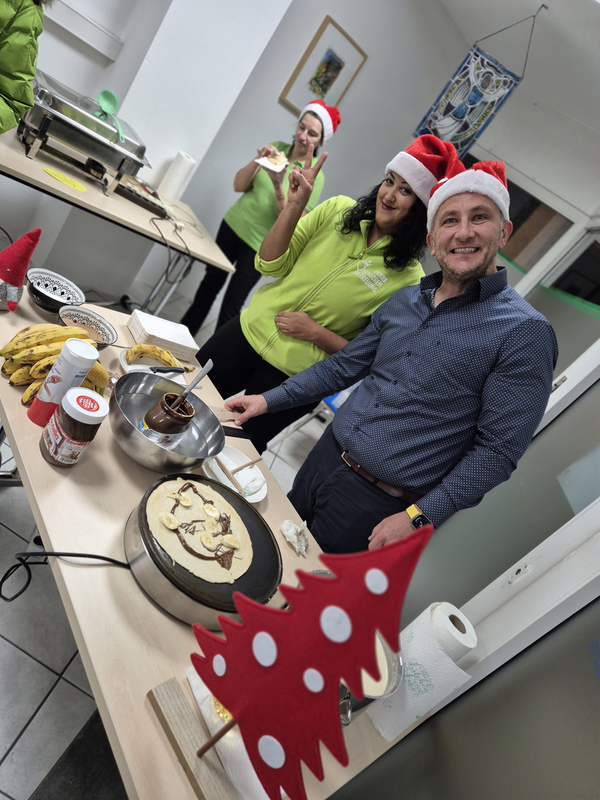 Im Anschluss wurde gemeinsam gegessen und in Gesprächen auf das Jahr 2025 zurückgeblickt. Ein herzlicher Dank gilt der Seniorenbetreuung Saar, die unsere Adventfeier mit einem Crêpe-Stand bereicherte und für eine besonders warme, gemütliche Stimmung gesorgt hat.