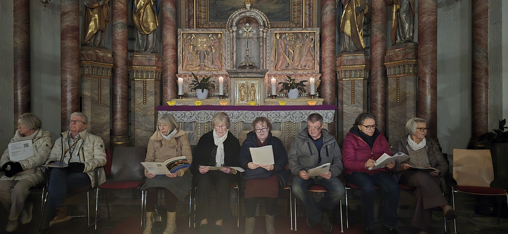 In der besonderen Atmosphäre des Altarraums der Eligius Kirche kamen Ehrenamtliche und Hauptamtliche in der Adventszeit zu einer besinnlichen Feier zusammen. Unter dem Leitgedanken „Frieden suchen und Frieden finden“ wurde Raum geschaffen für Stille, Gemeinschaft und gemeinsames Innehalten.